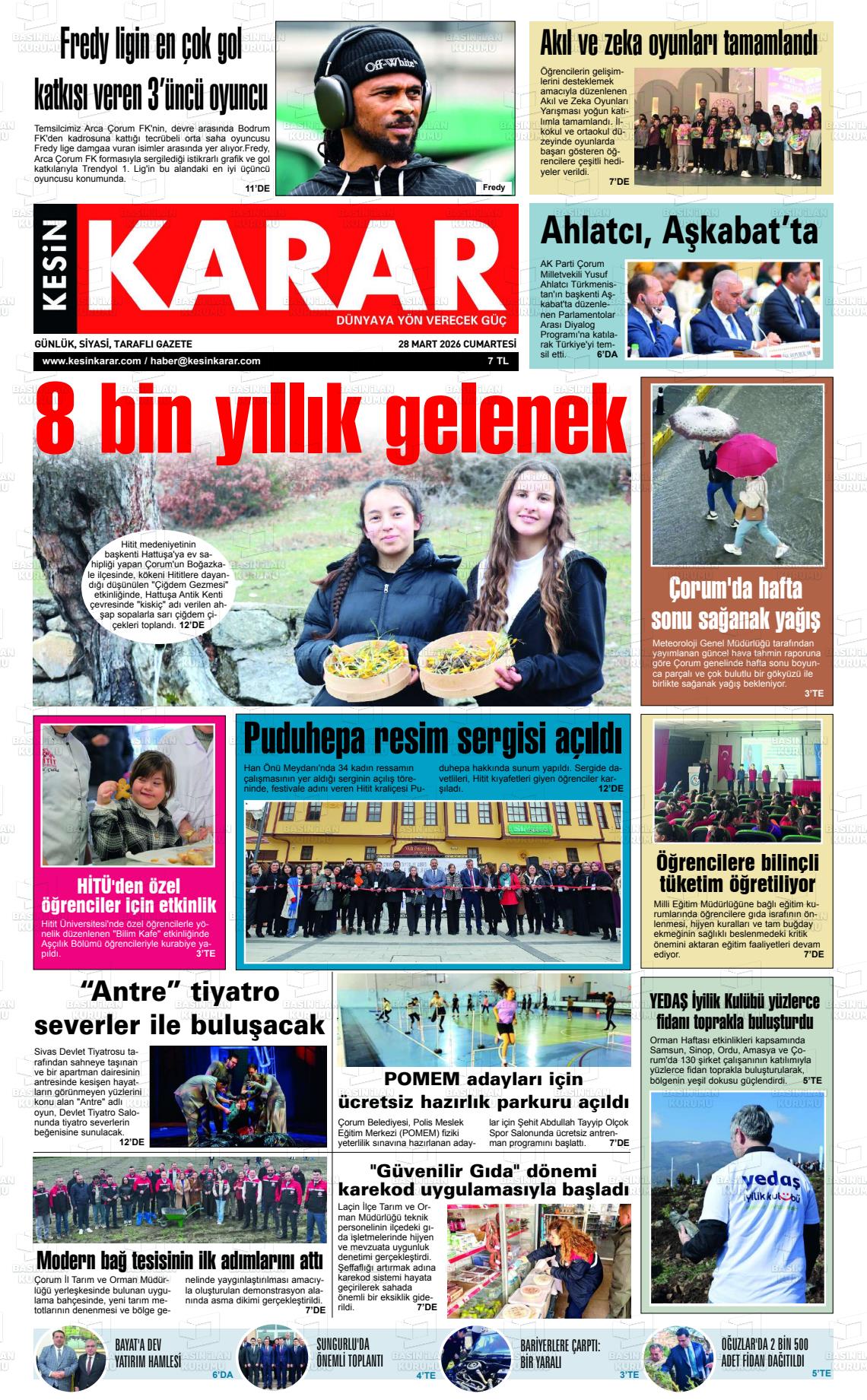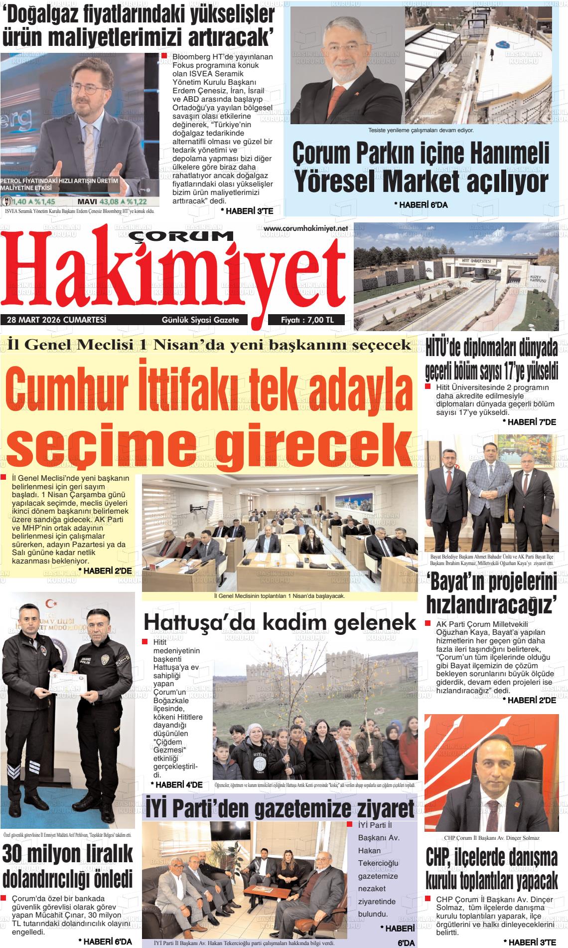 Çorum Yerel Gazeteleri 27 Mart 2026, Cuma Günü Manşeti