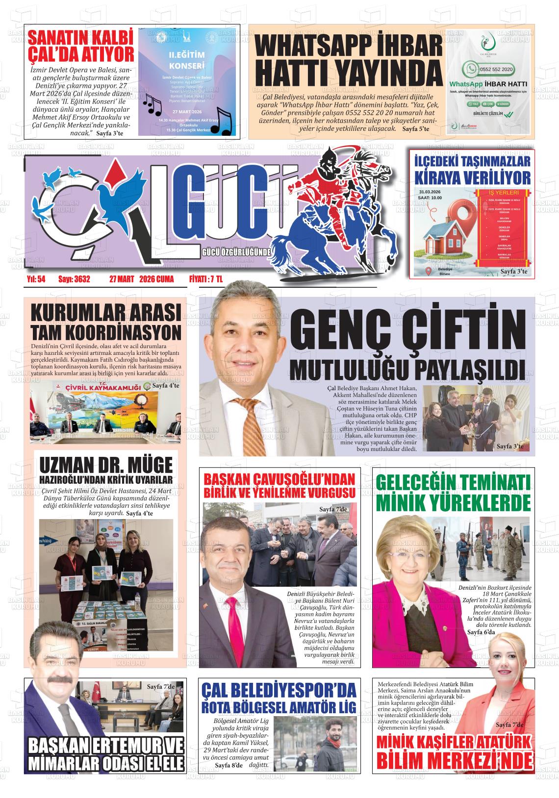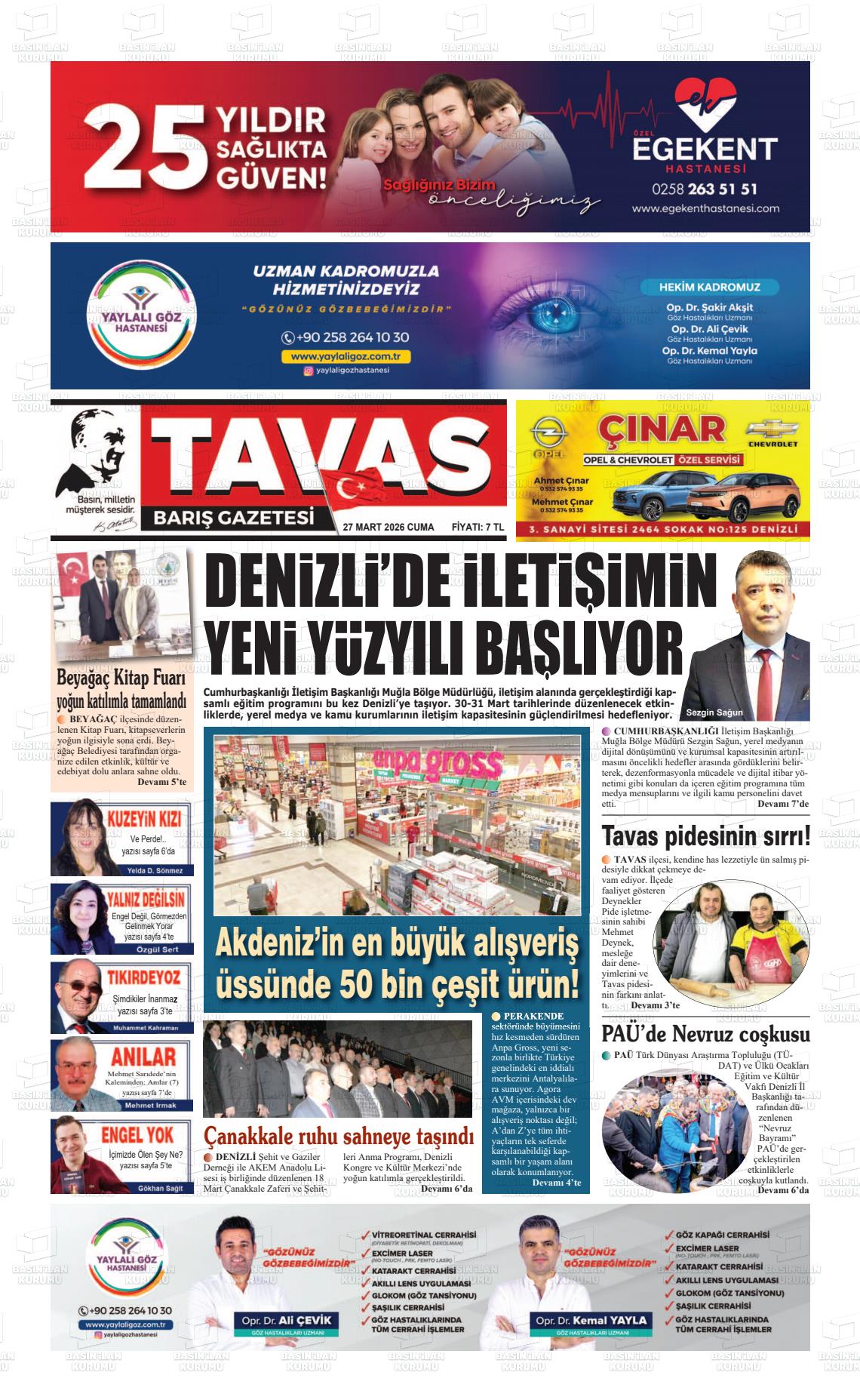 Denİzlİ Yerel Gazeteleri 27 Mart 2026, Cuma Günü Manşeti