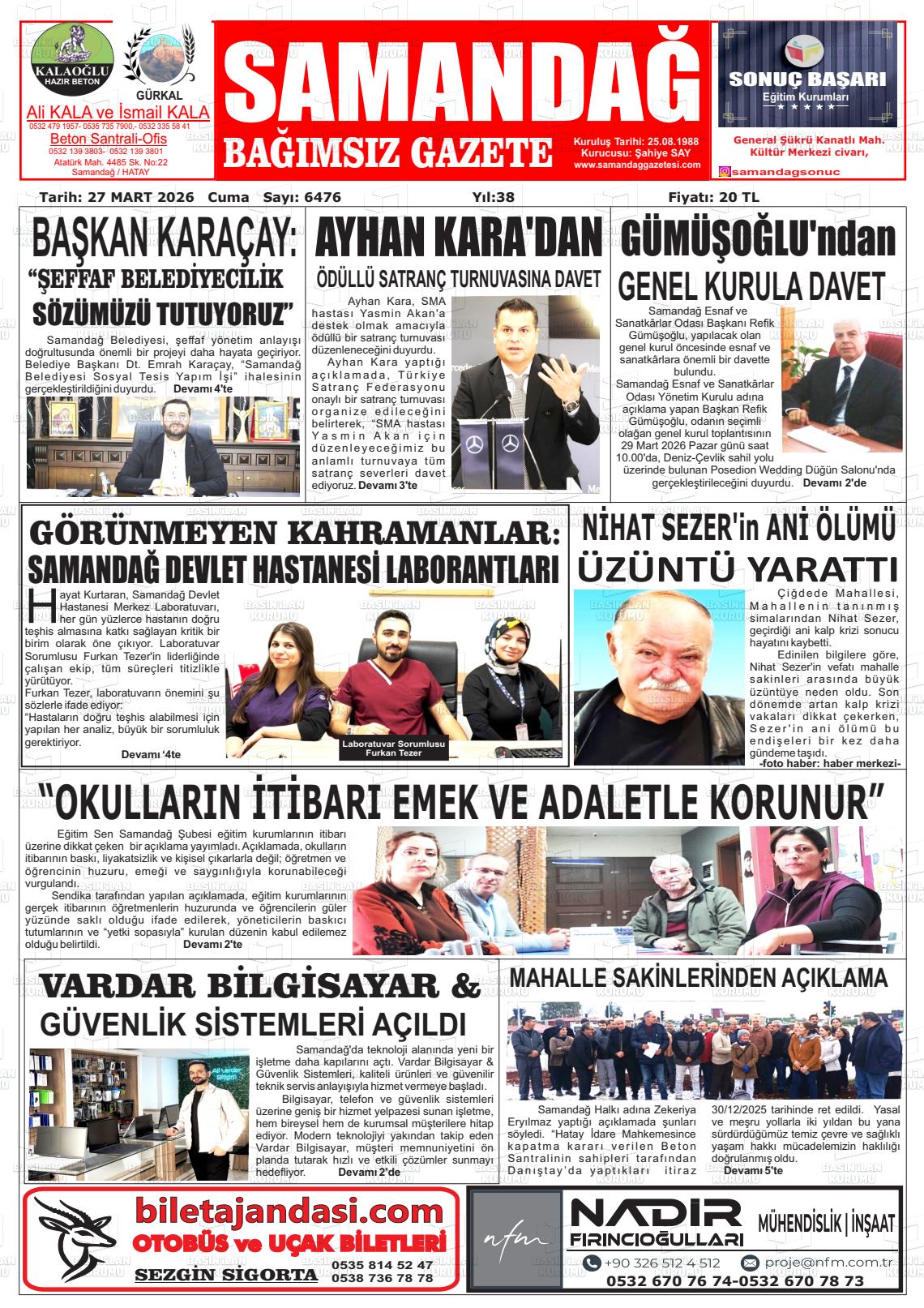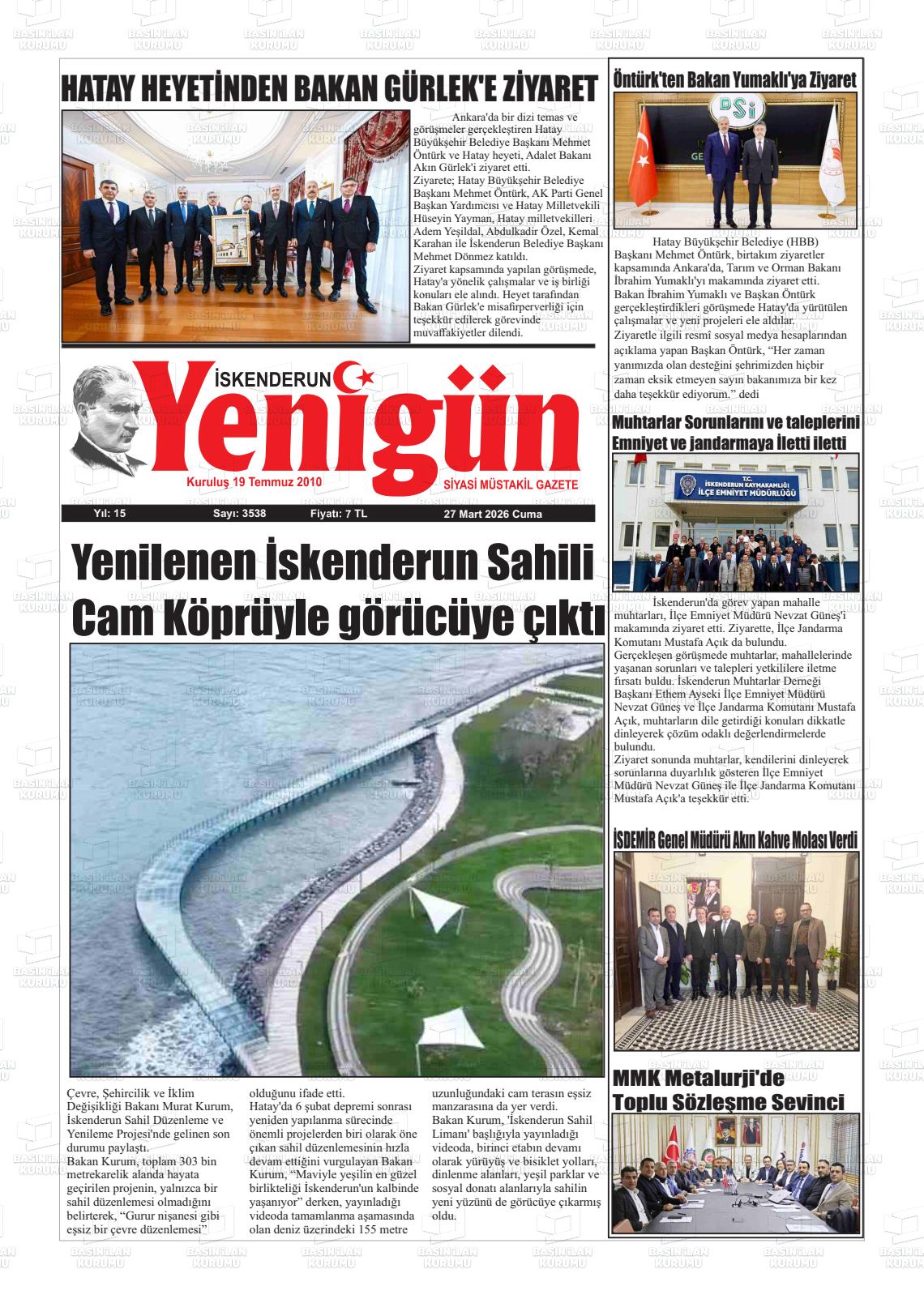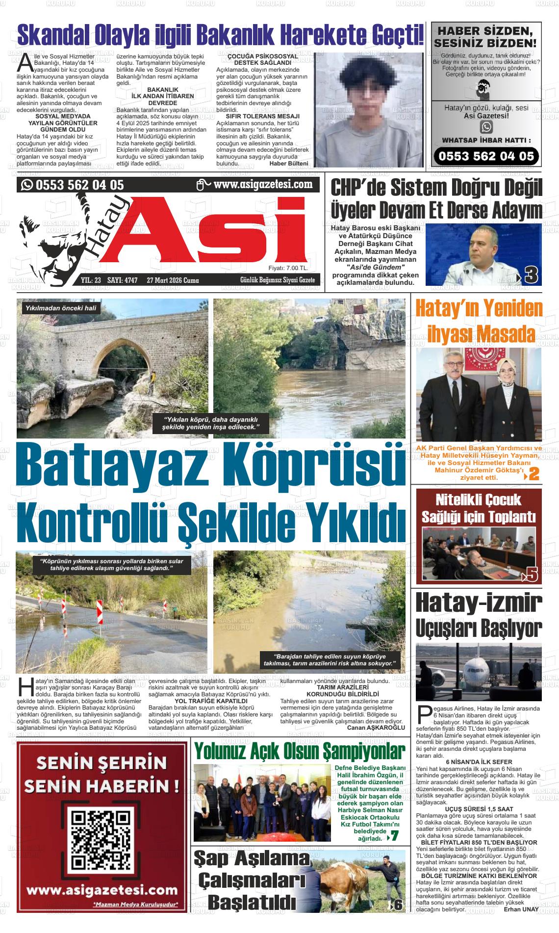 Hatay Yerel Gazeteleri 27 Mart 2026, Cuma Günü Manşeti