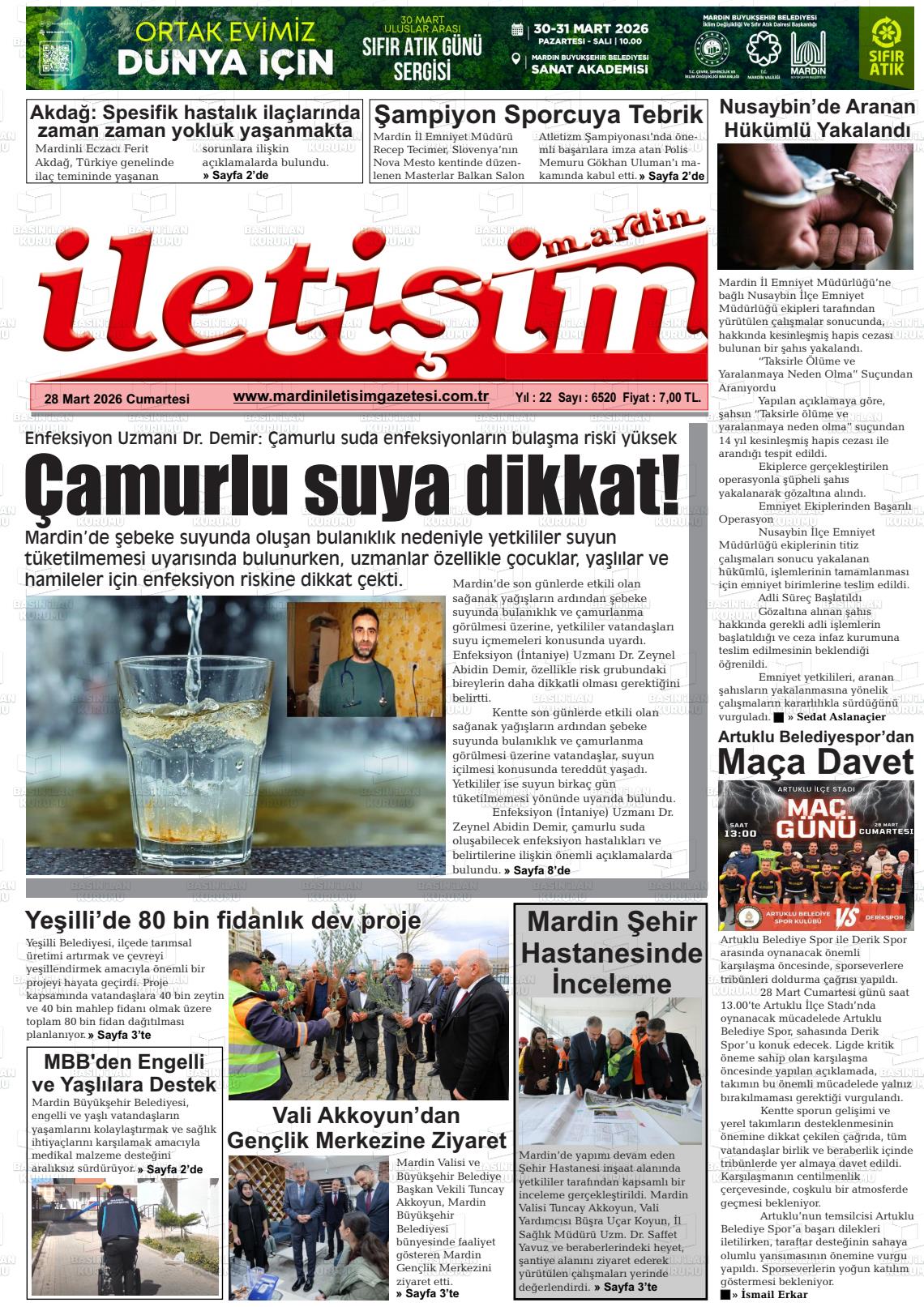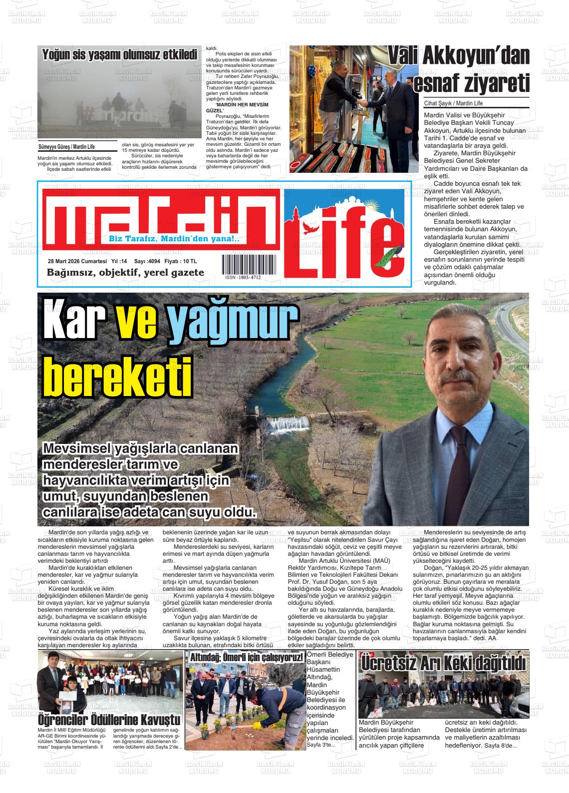 Mardİn Yerel Gazeteleri 28 Mart 2026, Cumartesi Günü Manşeti