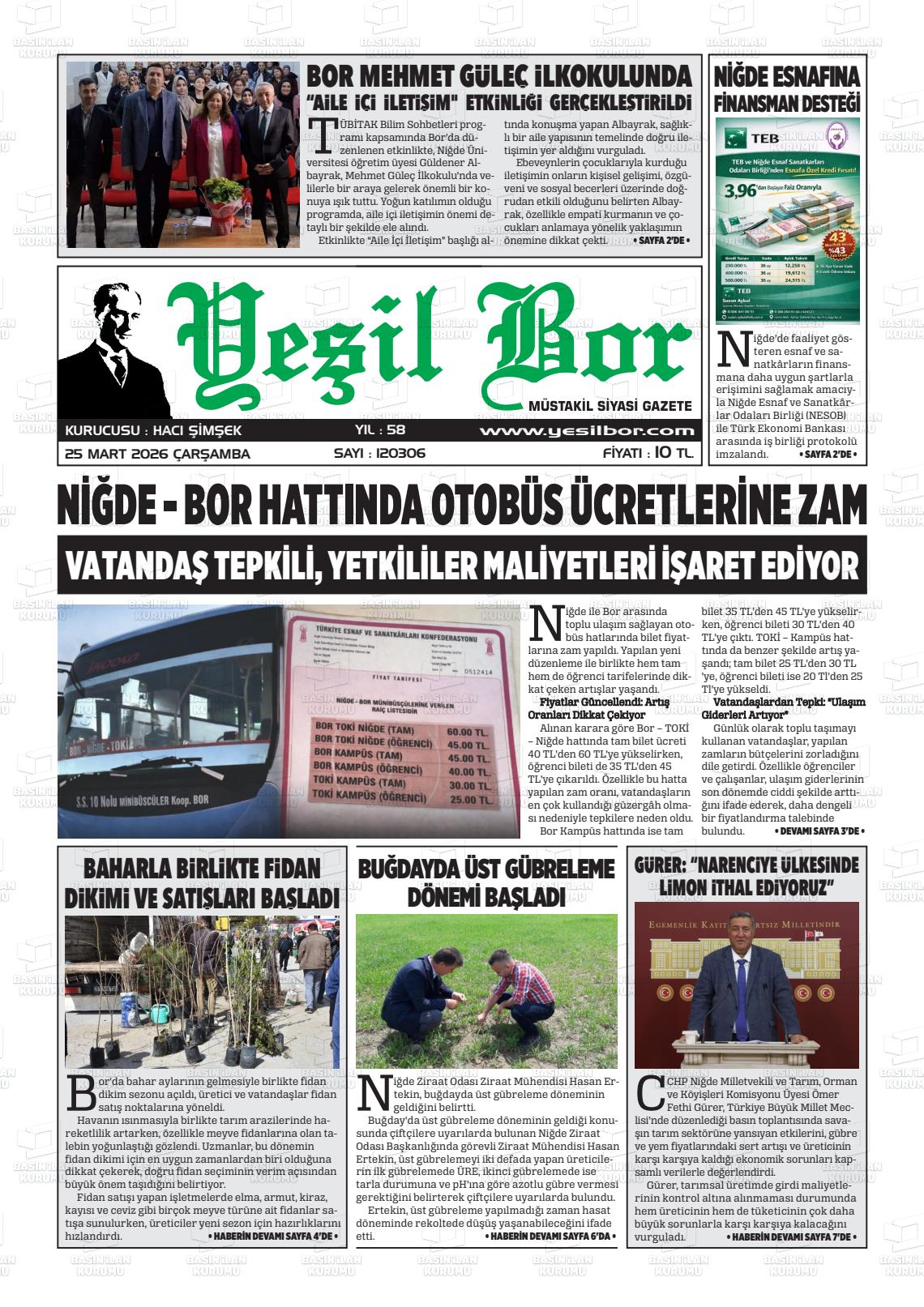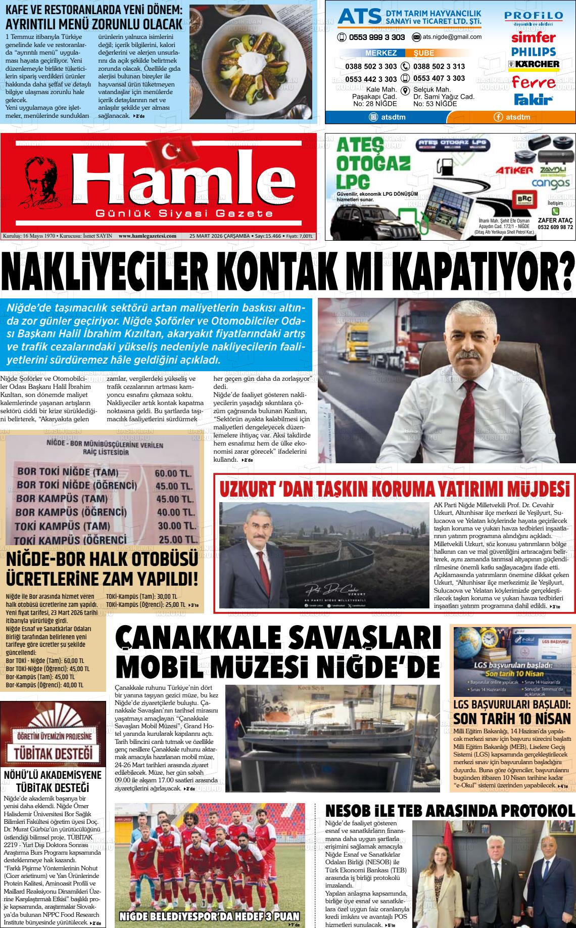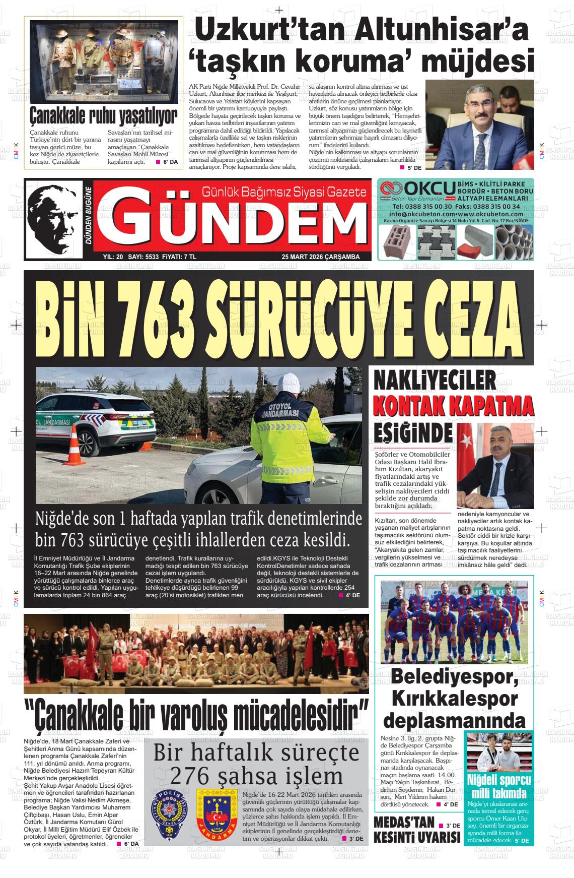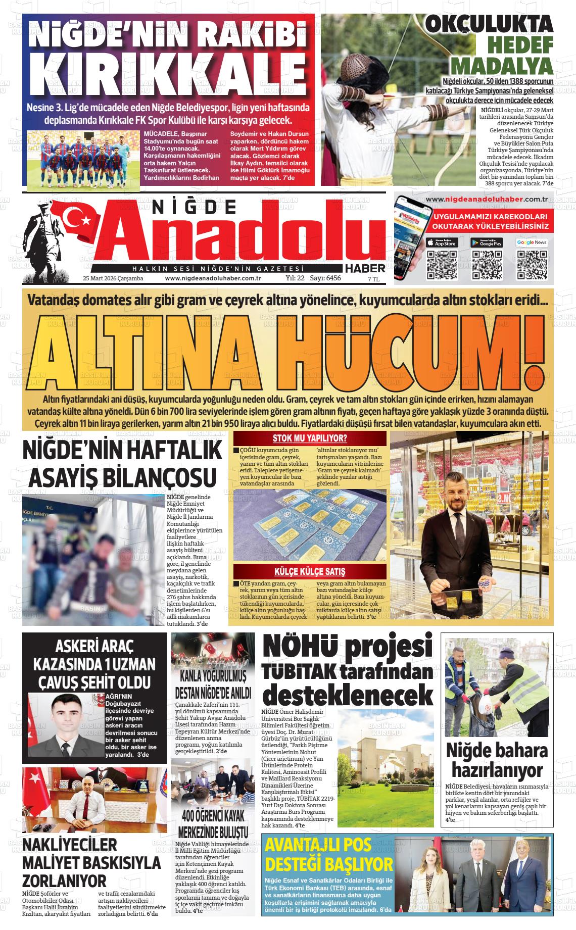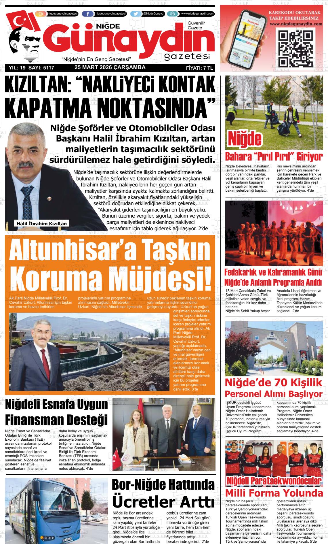 Nİğde Yerel Gazeteleri 24 Mart 2026, Salı Günü Manşeti