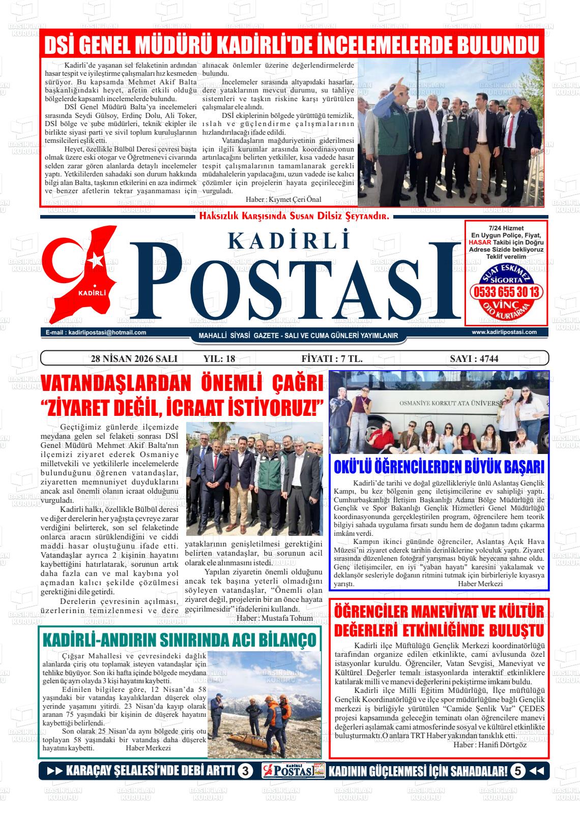 Osmanİye Yerel Gazeteleri 17 Nisan 2026, Cuma Günü Manşeti